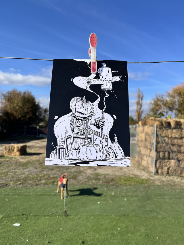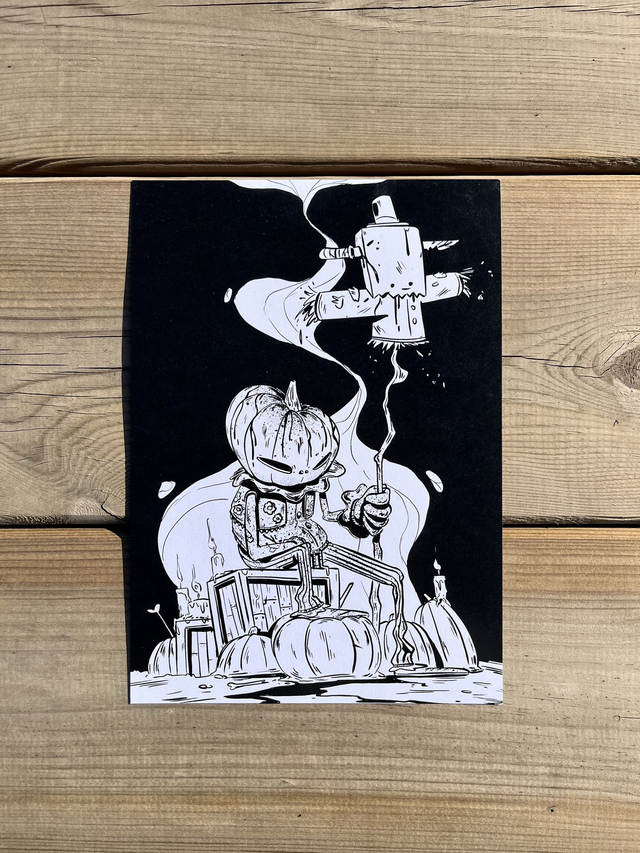 Lámina "Halloween" en blanco y negro. Papel Offset 360 gramos. Tamaño A5 --> 14.8 cm X 21 cm