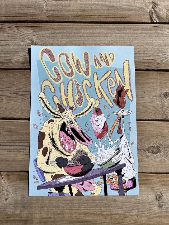 Lámina de la serie "Pollo y Vaca". Papel Offset 360 gramos.