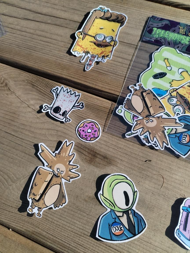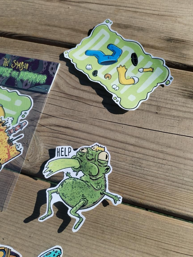 Pack de pegatinas mate de Los Simpson "Treehouse of Horror". El pack contiene 9 pegatinas, todas relacionadas con capitulos de Halloween de Los Simpson.